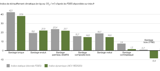 Une solution de bardage bois revient en moyenne à diminuer de 85 à 95% l’impact carbone de la solution de revêtement du bâtiment. Choisir une solution en bardage de bois de France par rapport à des bois d’importation, permet d’optimiser à nouveau 85% d’impact carbone de revêtement du bâtiment.